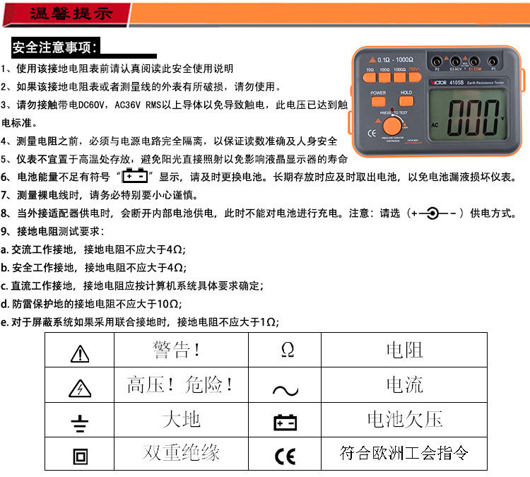 勝利 數(shù)字接地電阻測(cè)試儀 數(shù)顯接地?fù)u表 防雷電阻測(cè)試儀