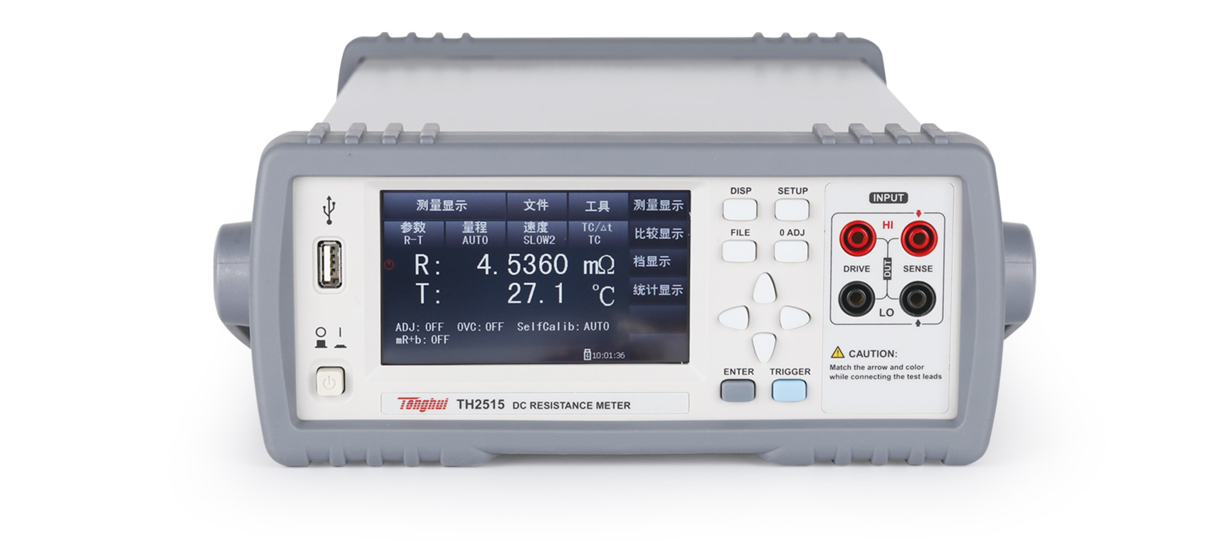 同惠電子憑借其在阻抗測試領域深厚的技術積淀和廣泛的市場調研,推出了帶觸摸功能和彩色液晶顯示的直流阻抗測試儀器--TH2515系列直流電阻測試儀。其較高的性能、便捷的操作、精美的外觀足以相較于市場上的前沿產品。TH2515系列直流電阻測試儀采用當前主流的32bits CPU和高密度SMD貼裝工藝,帶觸摸功能的24位色4.3英寸彩色液晶屏,界面清爽、操作便捷;0.01%的電阻測量精度及0.1uΩ小電阻分辨率在國內首屈一指,其適用于繼電器接觸電阻、接插件接插電阻、導線電阻、印制板線路及焊孔電阻等;很好的消除了熱電對被測元件接觸的影響而引起的潛在誤差;溫度補償和溫度轉換功能免除環境溫度對測試工作的影響;失調電壓補償功能能夠有效消除被測件的自身的電動勢以及接觸電勢差;其高速的測試速度以及通過handler接口可以輸出10檔不同邊界的比較結果信號,便于生產線上的自動化操作。TH2515系列提供了幾乎有主流的接口功能,可方便的與PC進行數據通訊和遠程控制。
