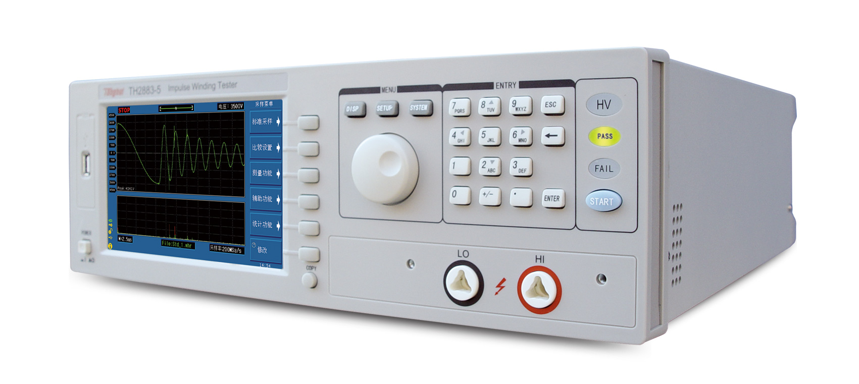 TH2883系列根據(jù)輸出電壓不同分為TH2883-1、TH2883-5、TH2883-10三種單通道輸出的型號。TH2883-1是低電感脈沖式線圈測試儀,具有低30V、1200V的脈沖電壓,可測試低至1uH電感量的線圈,是開關(guān)電源等用電感線圈的理想測試產(chǎn)品。TH2883-5具有100V-5000V的寬范圍脈沖電壓,是測試各種線圈的標(biāo)配產(chǎn)品。TH2883-10具有10kV的脈沖輸出電壓,可測試更高絕緣耐壓的匝間測試。若配備TH28831匝間絕緣多路掃描儀可將上述三款單通道測試儀擴(kuò)展為10通道。