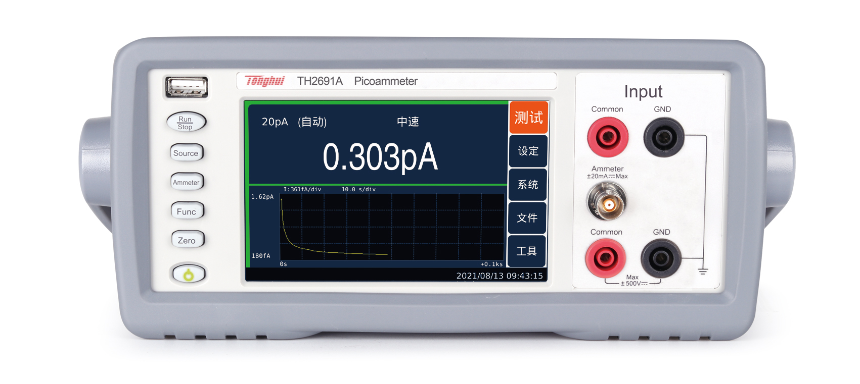 針對不同的測試對象和測試環境,同惠提供各種適配的附件。與傳統的皮安表和高阻計不同,TH2690 系列采用 5寸彩色LCD 電容觸摸屏,使操作更直觀便捷,提供多種視圖模式以便用戶觀察數據,除數字格式外,測量數據還可以轉換為直方圖及趨勢圖的形式,使用戶能即時查看測量數據的分布規律或變化趨勢。