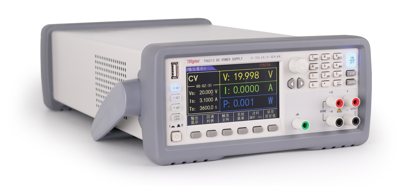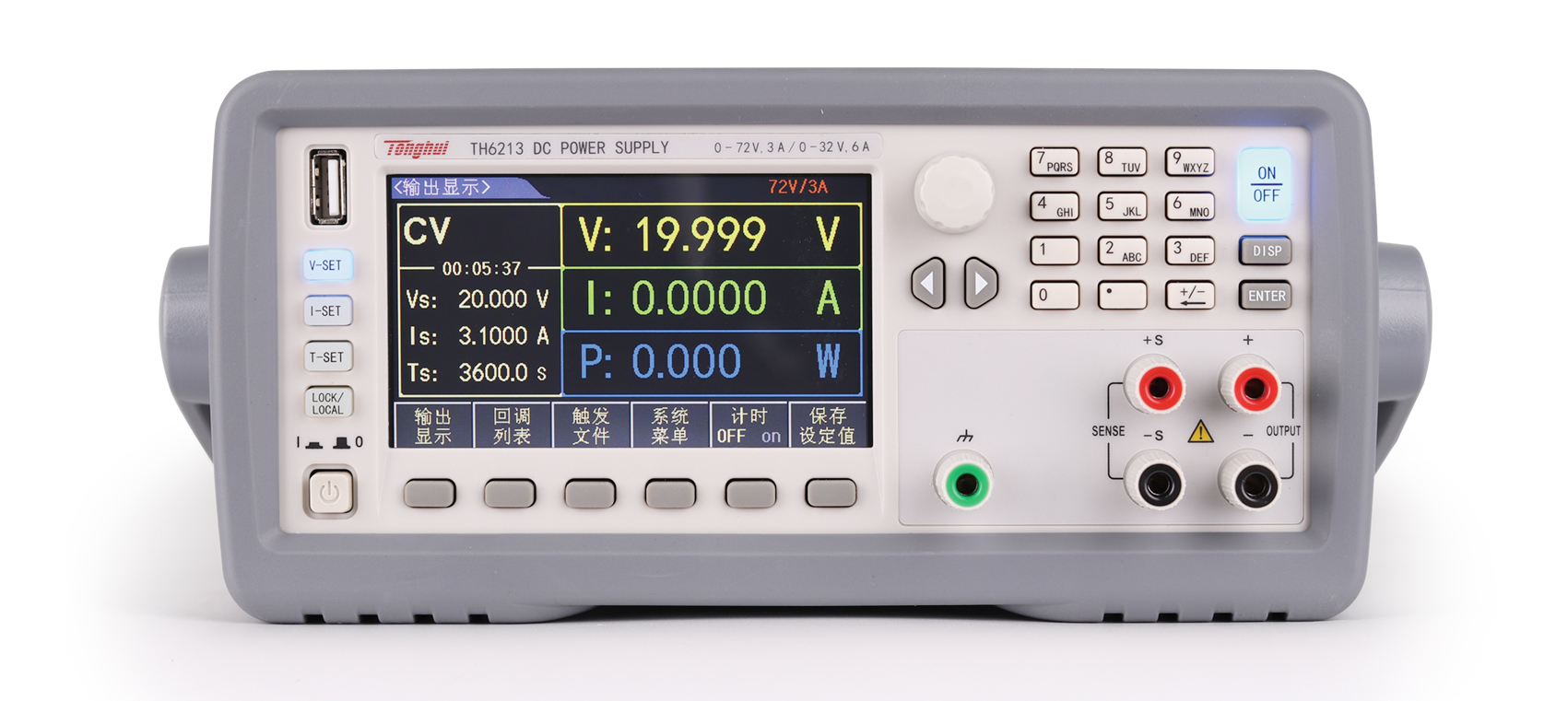 TH6200系列電源前后面板都可以輸出,具有1/2標(biāo)準(zhǔn)機箱尺寸,配備齊全的通訊接口,支持SCPI和MODBUS通訊協(xié)議,使其可以方便的集成于自動化系統(tǒng)上。