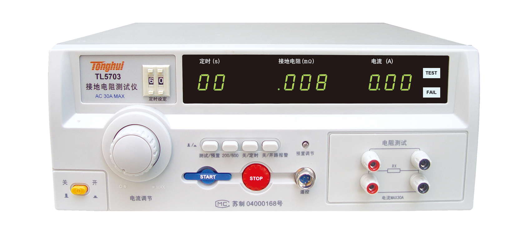 TL5703 型接地電阻測試儀是按照GB﹑IEC﹑ISO﹑BS﹑UL﹑JIS 等國際國內的安全標準而設計的,接地電阻的指標是衡量各種電氣設備安全性能的重要指標之一。它是在大電流(25A或10A)的情況下對接地回路的電阻進行測量,同時也是對接地回路承受大電流指標的測試,以避免在絕緣性能下降(或損壞)時對人身的傷害。本測試儀是為滿足以上要求為生產車間及實驗部門提供高性能測試儀器而開發生產的。本儀器對供電電壓要求不高,測量精度高,速度快,使用方便,特別適用于要求高的實驗室和自動檢測線上使用。斷路報警選擇功能(即路報警)可以方便地知道儀器是否工作在正常測試狀態,用戶可以根據實際需要選擇是否需要此項功能。本儀器采用三位半數字顯示,讀數方便,采用優化設計,整機具有極高的可靠性和穩定性。