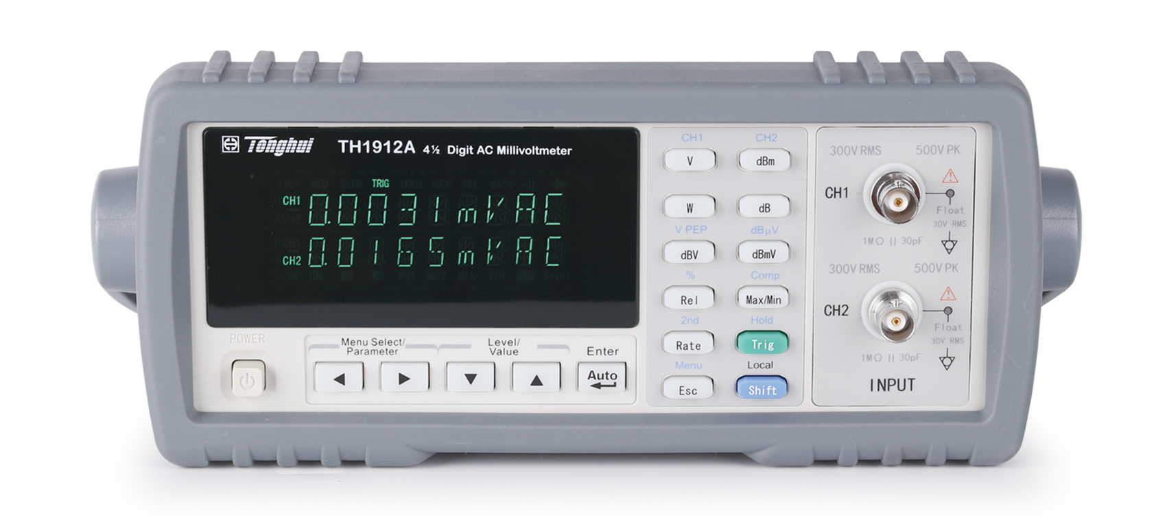 ■ TH1912A雙通道數字交流毫伏表。主要用于工廠、研究、、科研實驗室。測量5Hz-3MHz正弦電壓,也可作為功率計使用。電壓、電平和功率電平(任意阻抗)測量。信號源的頻率響應直讀誤差%,放大器增益dB,衰減器衰減量dB,音響設備和有線電傳輸電平的測量。電壓探頭電路板測試安全方便。