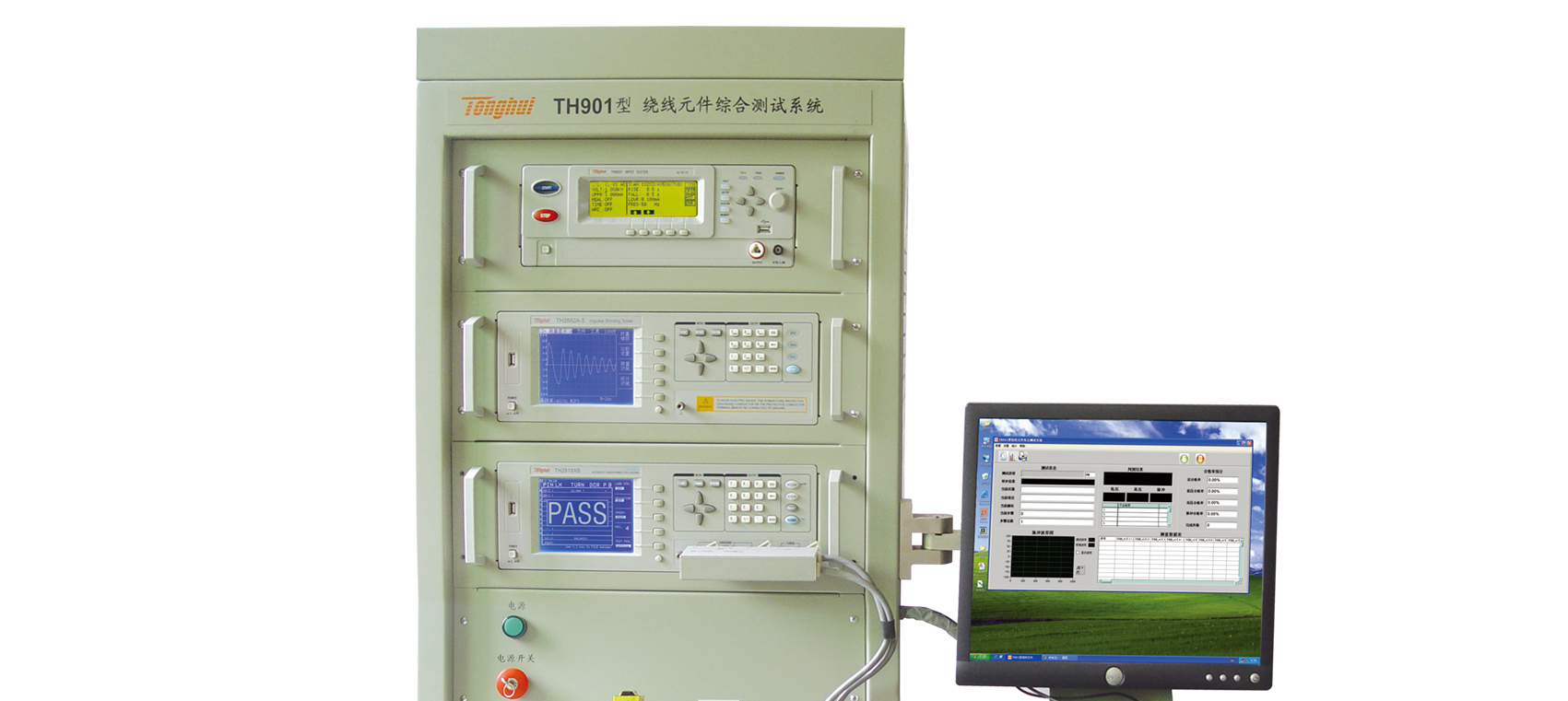 ■ TH901型繞線元件綜合測試系統是一套高精度,高自動化,高效率的測試系統。不但可以測試低壓參數,安規參數,線圈脈沖參數,而且能搞自動保存測試數據,自動對測試數據進行分析。